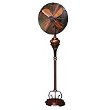 Deco breeze byzantine floor standing fan. 16-inch fan head. Decorative and functional oscillating fan with a whisper-quiet 45 watt motor. Three-speeds - low speed is 900 rpm; the medium speed is 1100 rpm; the high speed is 1280 rpm.